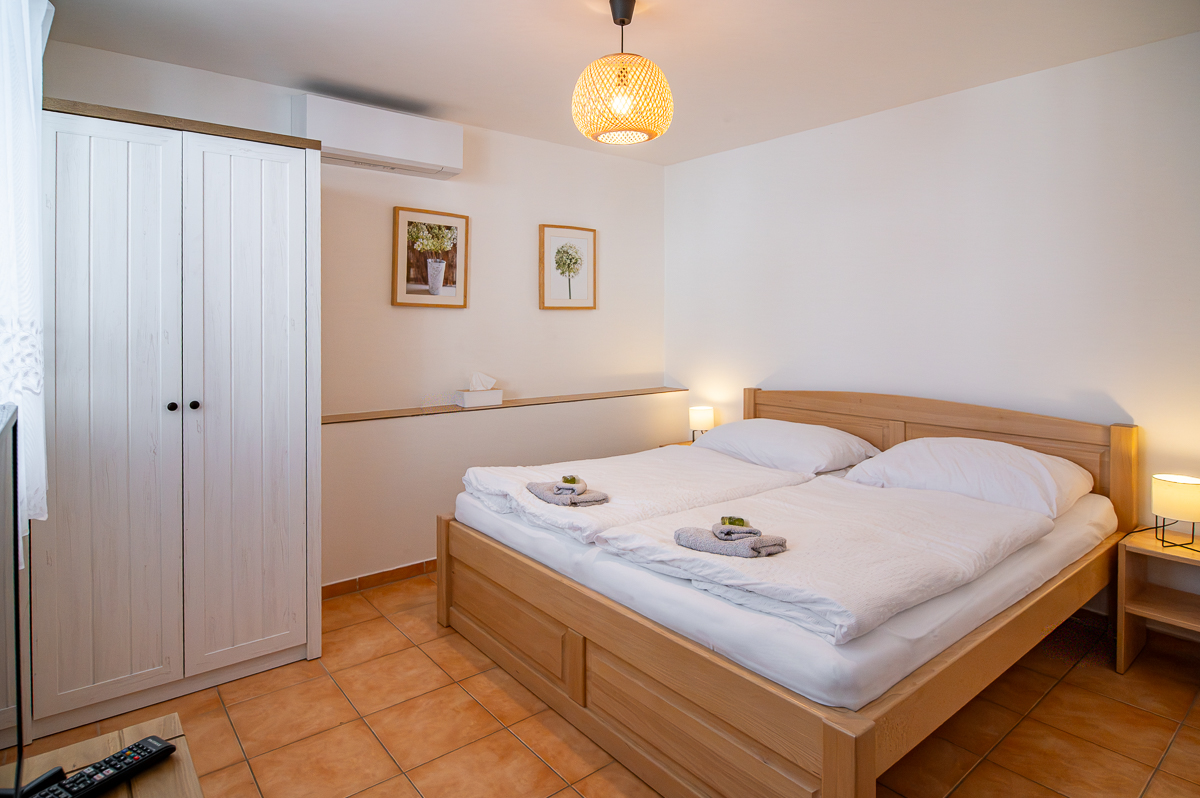Dvoulůžkový pokoj s manželskou postelí a koupelnou