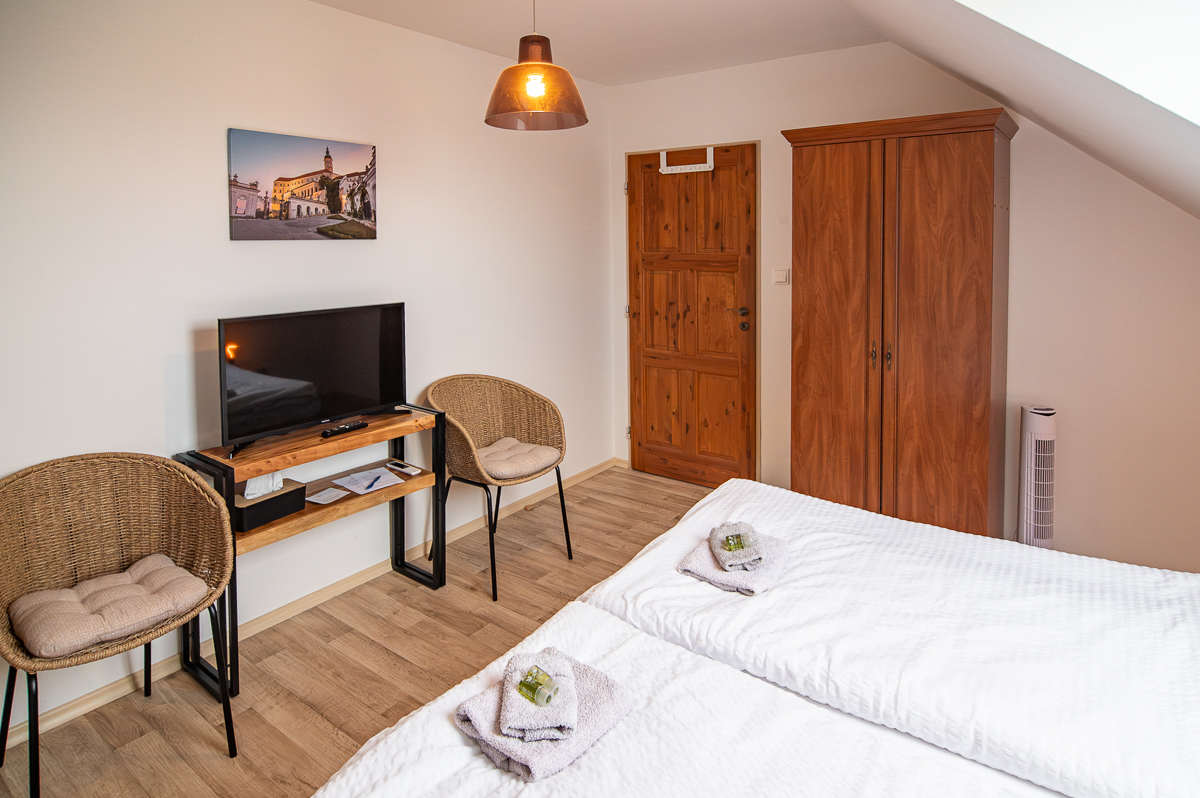 Dvoulůžkový pokoj s manželskou postelí a sdílenou koupelnou 2